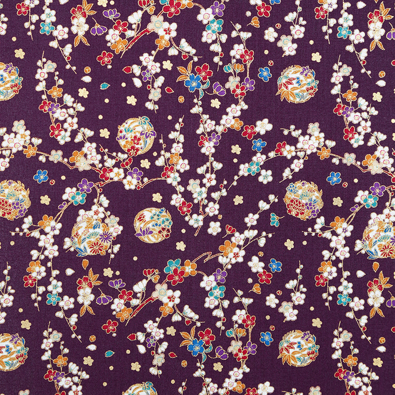 和風柄 民芸シリーズ 2000-111 シーチング生地に花柄や桜や鞠が描かれております / Japanese-style pattern folk art series 2000-111 The sheer fabric is adorned with floral patterns, cherry blossoms, and ball designs.